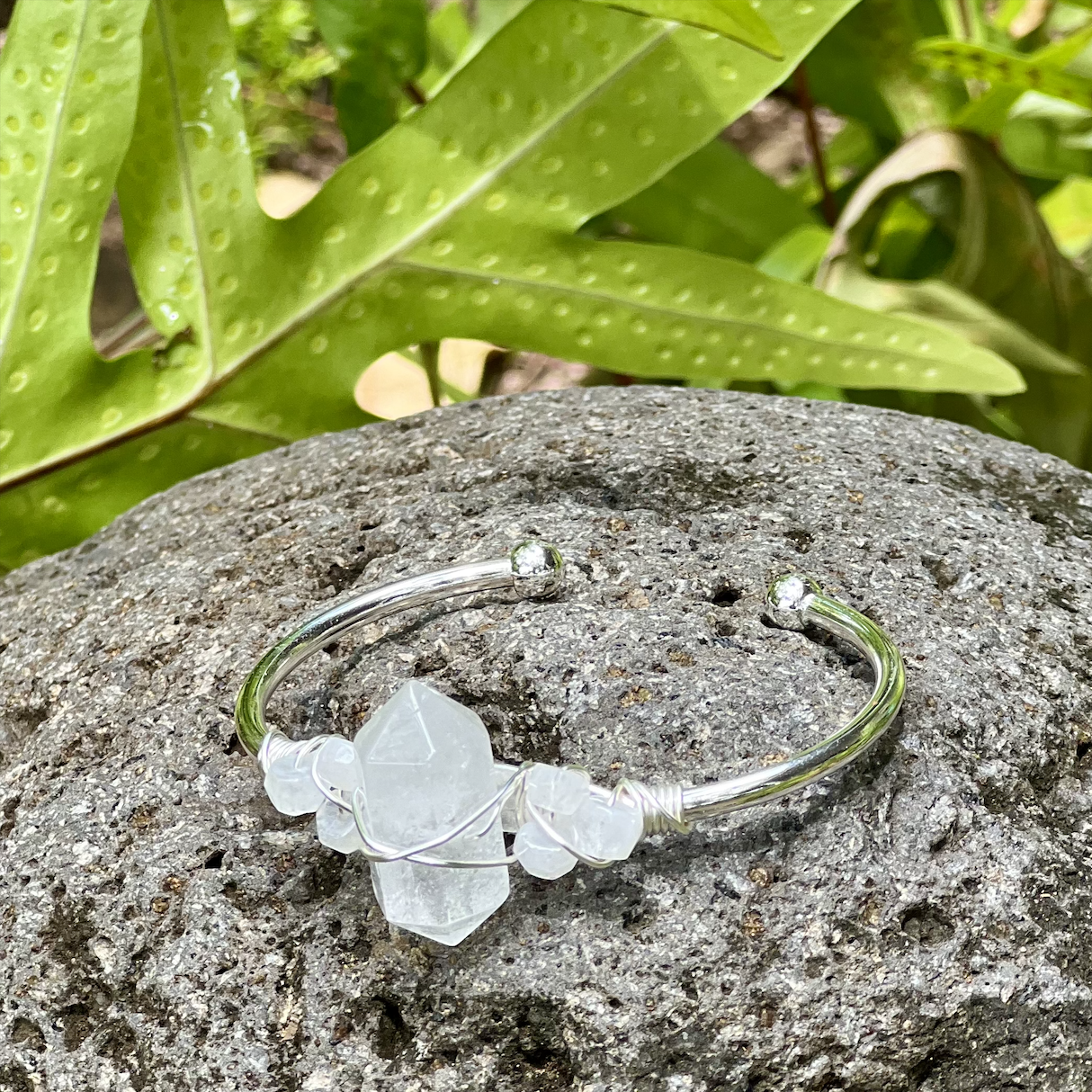Clear Crystal Quartz Gemstone Silver Bangle Cuff Bracelet ~ "Spiritual Awareness, Clarity, & Power"
