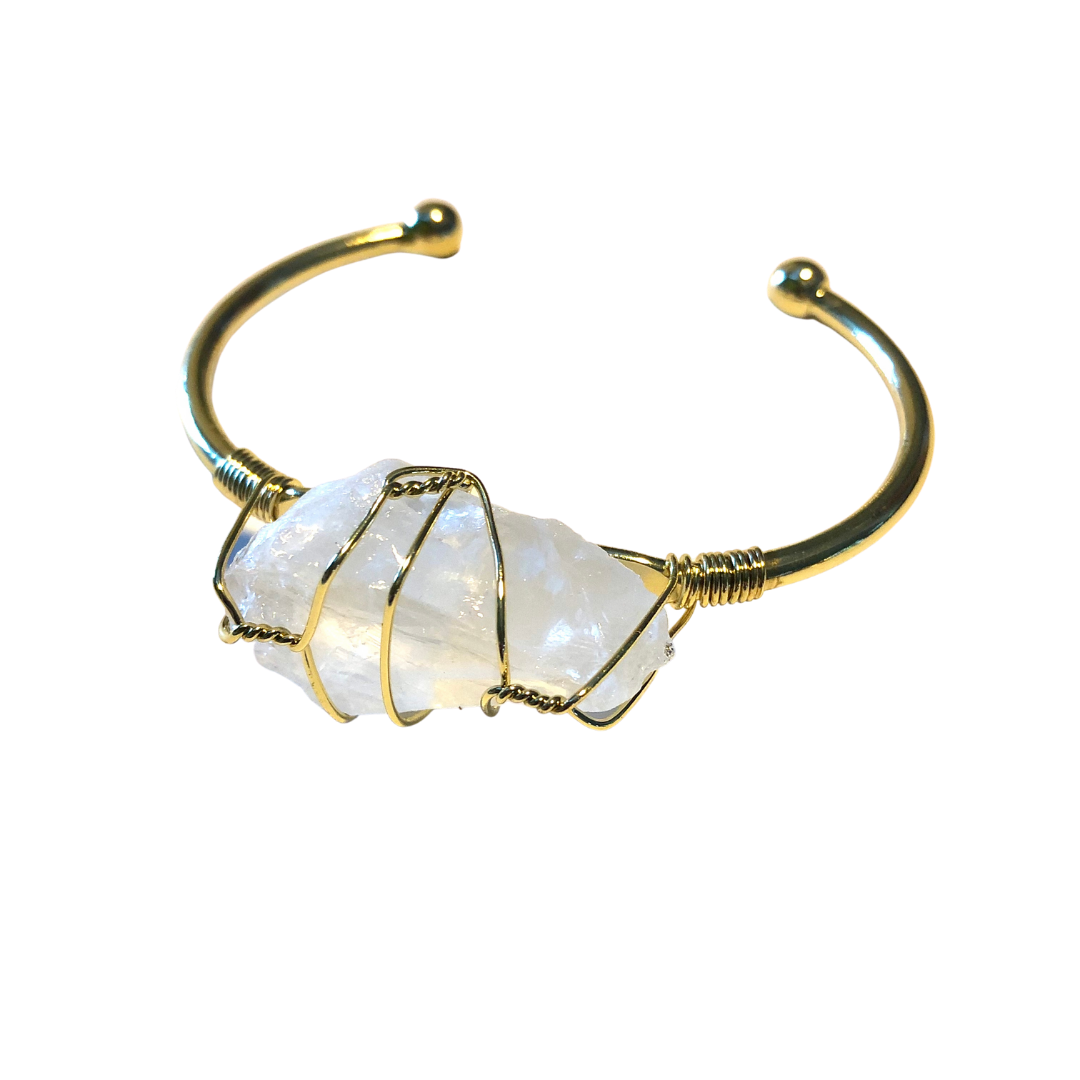 Clear Crystal Quartz Rough Gemstone Gold Bangle Cuff Bracelet ~ "Spiritual Awareness, Clarity, & Power"