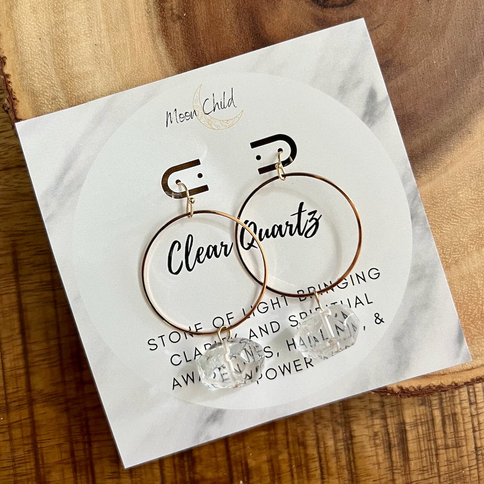 Clear Quartz Orb Gemstone Gold Earrings ~ "Spiritual Awareness, Clarity & Power"