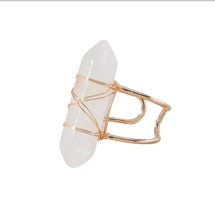 Crystal Quartz Gemstone Gold Adjustable Obelisk Ring