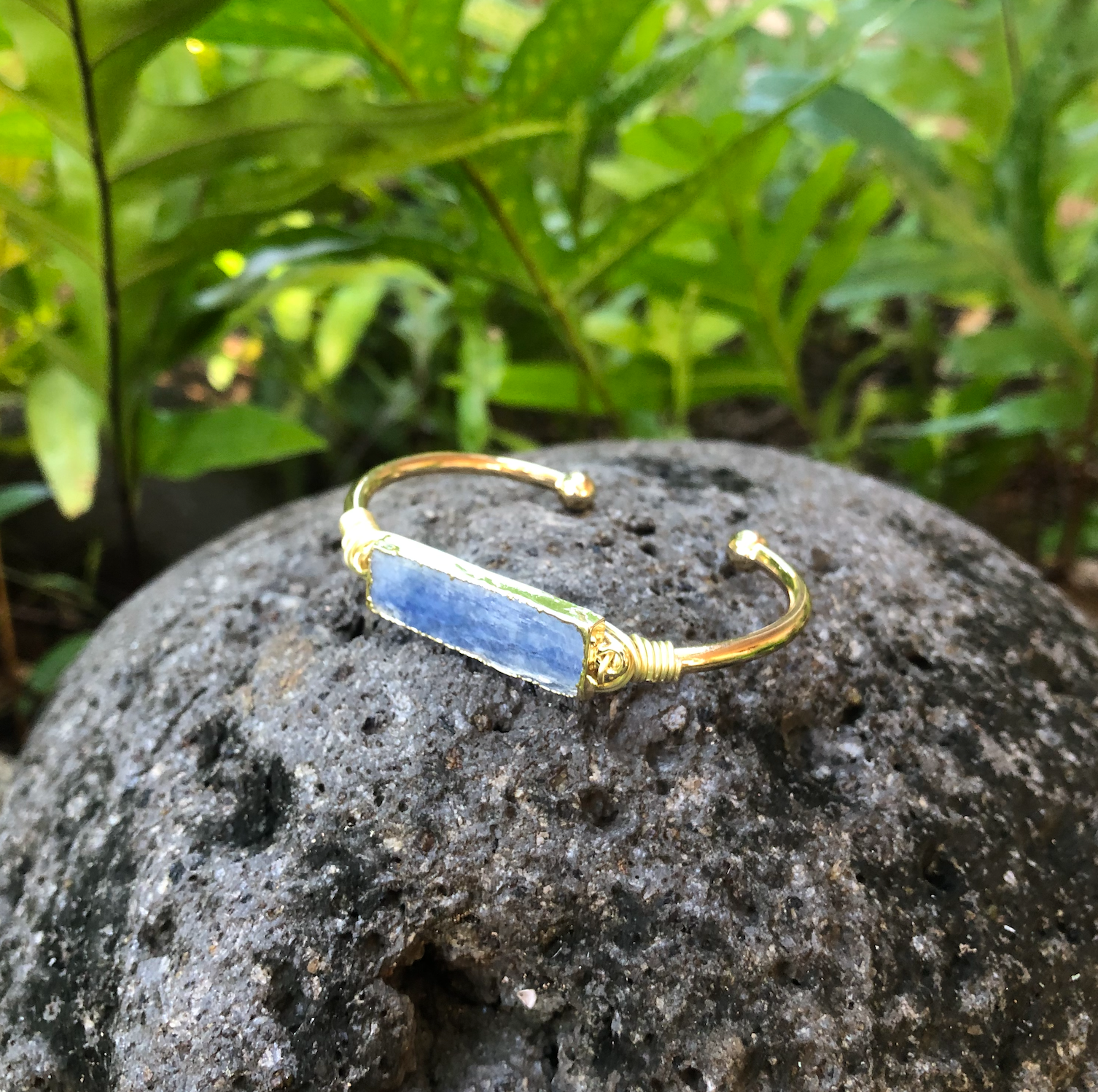 Kyanite Gemstone Gold Bar Bangle Cuff Bracelet ~ "Spiritual Awakening & Astral Travel"
