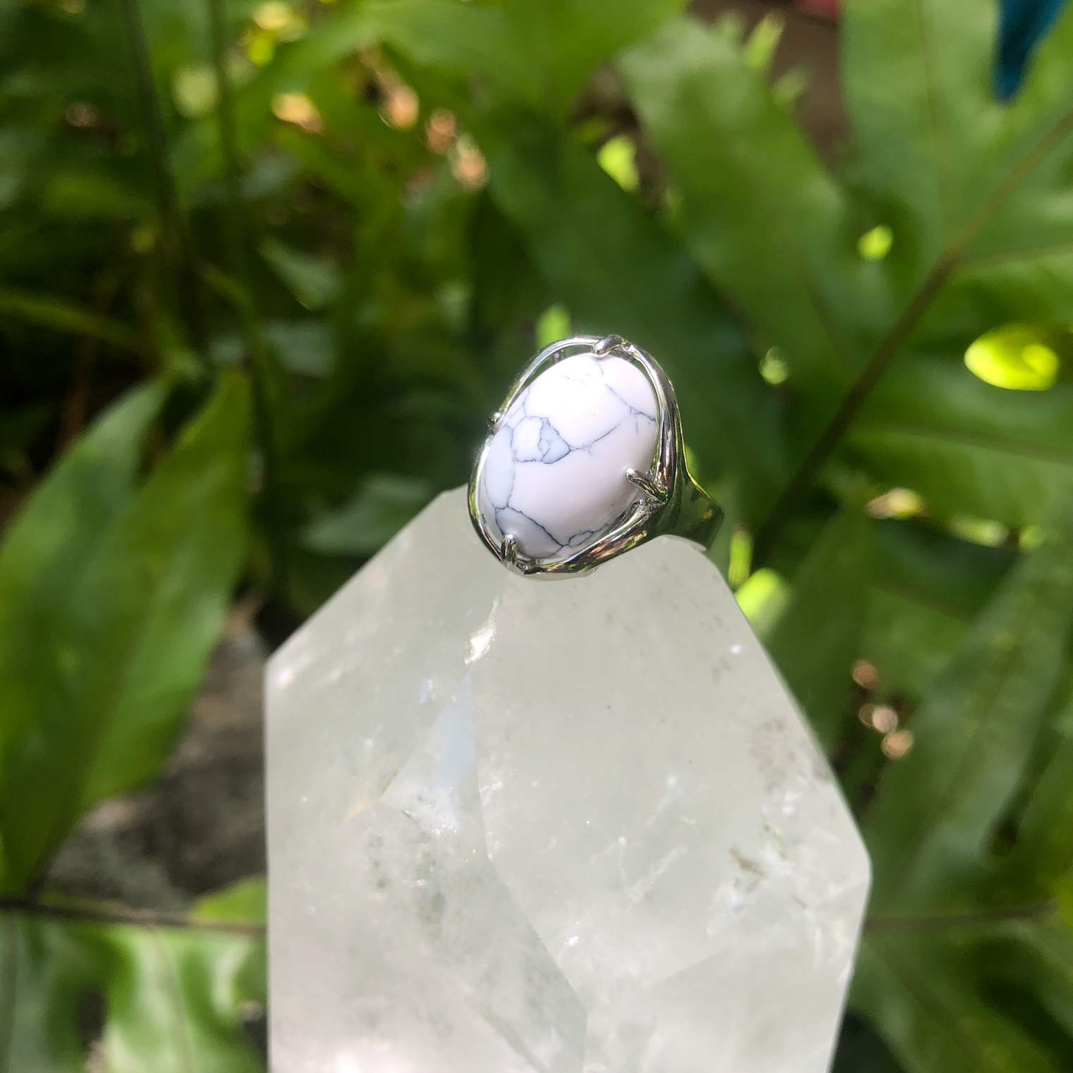 White Turquoise Gemstone Adjustable Ring